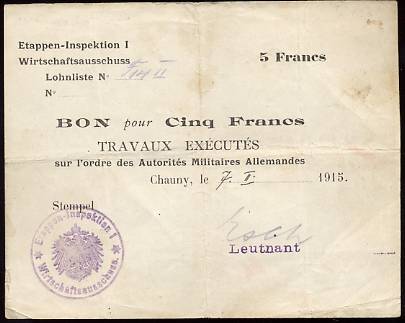 A) CHAUNY 20 Etappen-Inspektion der 1. Armee, Feld-Intendantur