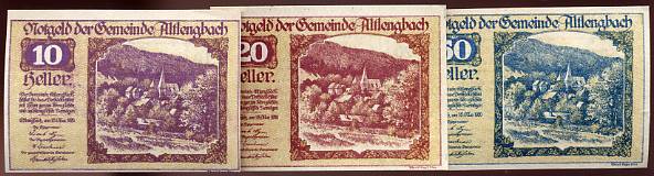 10, 20, 50 Heller, graues Papier, Rs. Druck schwarz